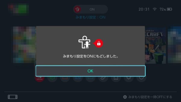 ③ Nintendo Switchの「みまもり設定」を一旦オフ